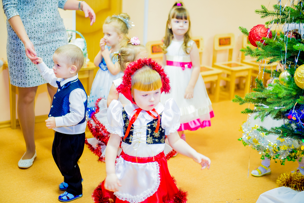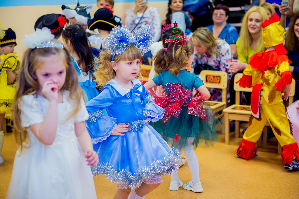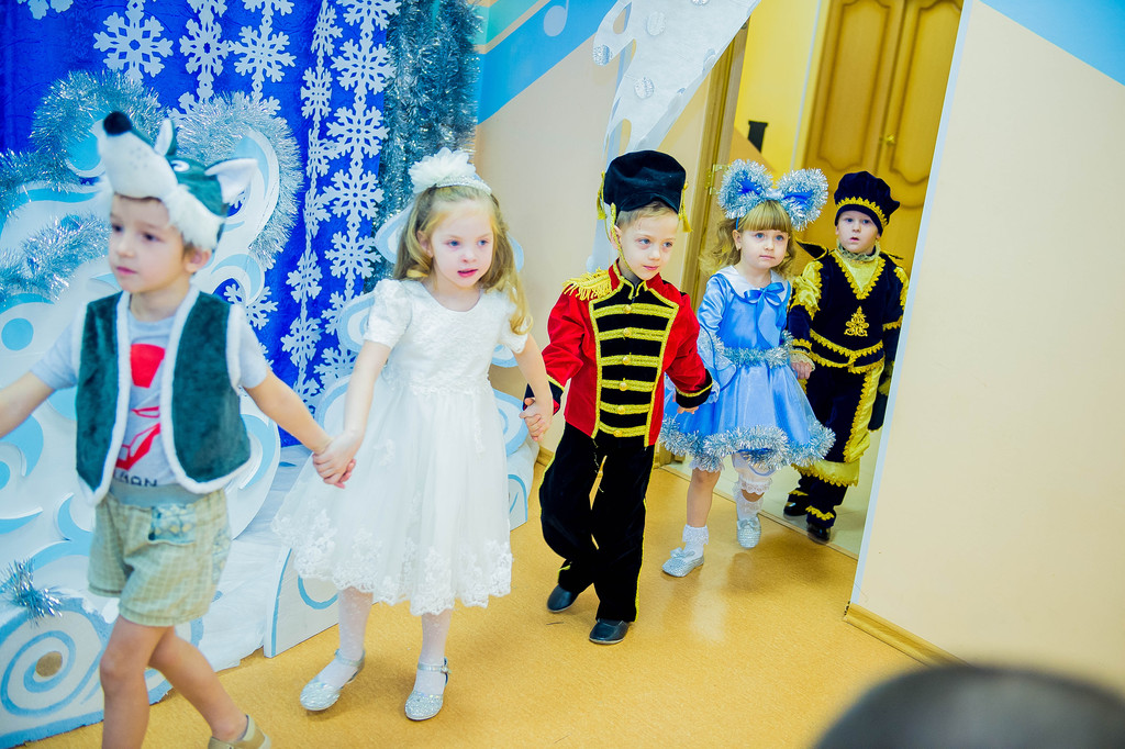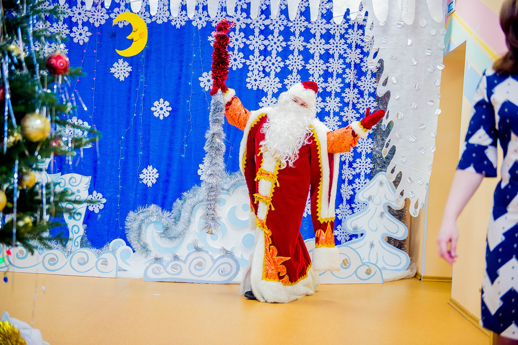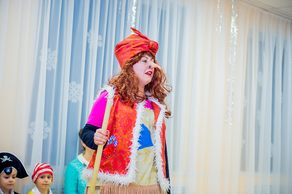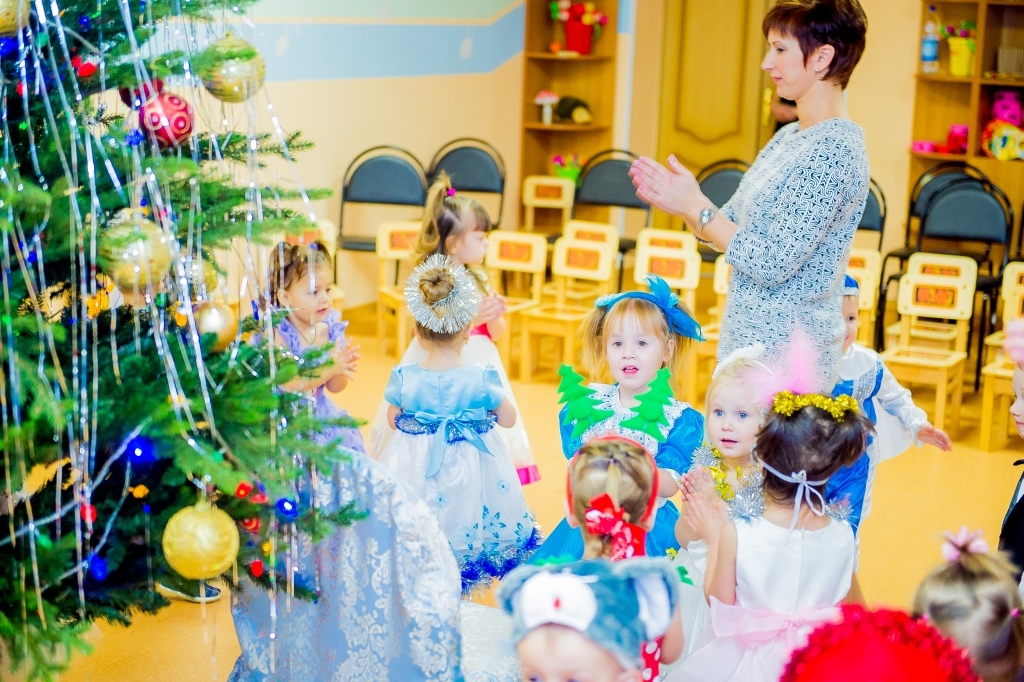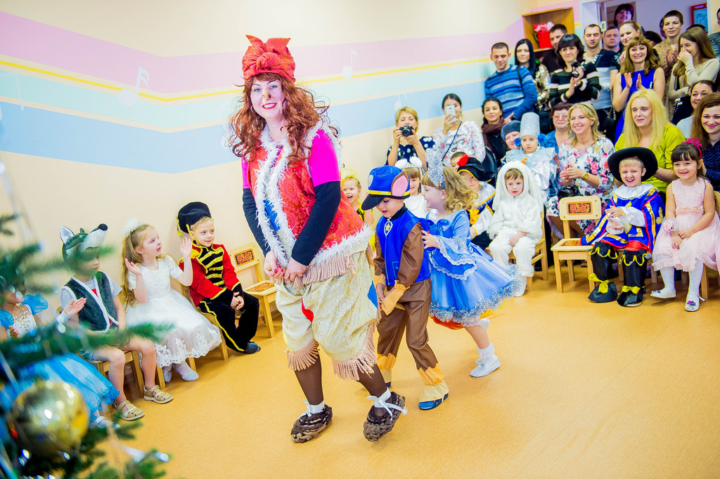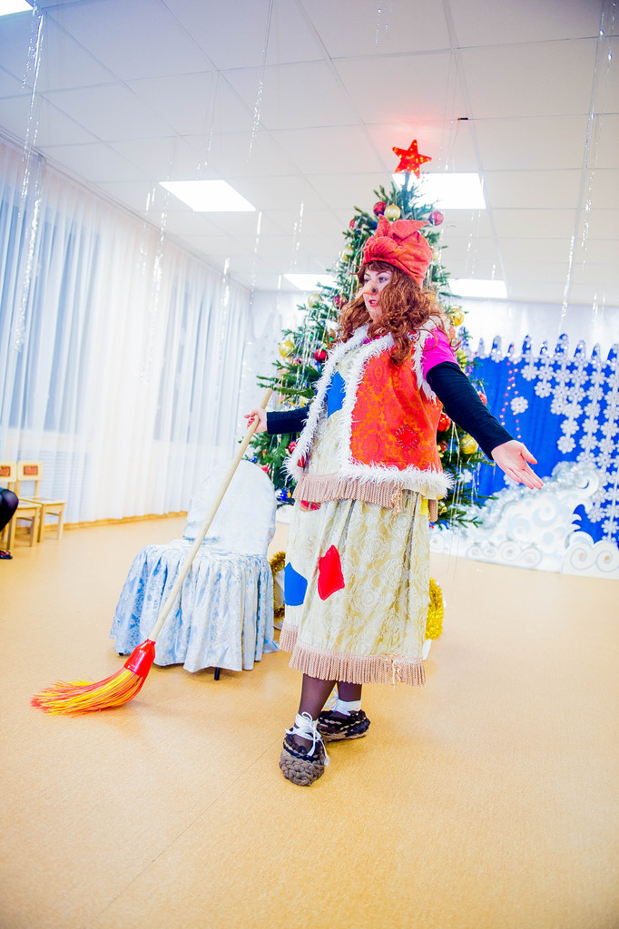 Наш детский сад посещают дети в возрасте от 2-х до 7-ми лет и для каждого возраста «главный режиссер» всех праздников Марина Владимировна Козлова написала свой сценарий с учетом возрастных особенностей воспитанников. Так, по сюжету праздника для младших детей Баба Яга спрятала Снегурочку, и чтобы помочь Снегурочке детям надо было выполнить разные задания: отгадать загадки, «полетать» на волшебной метле, петь и танцевать. А сюрпризным моментов был «приход» избушки на курьих ножках, которая повеселив детей, «снесла» для них сладкие подарки.
