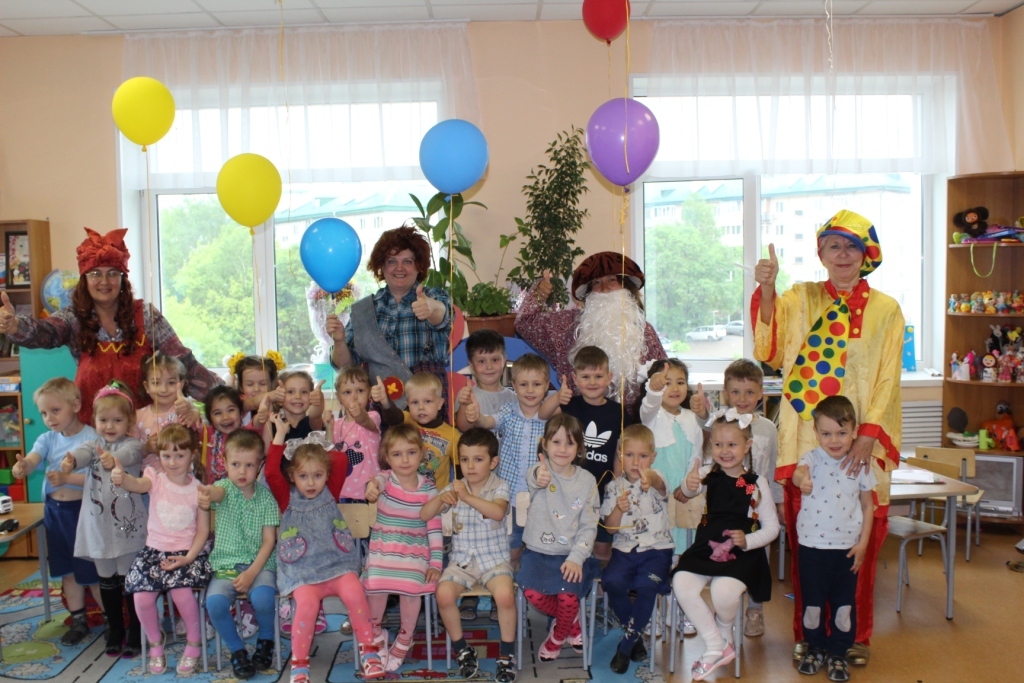 Первого июня прошел веселый праздник под названием «Праздник детства и солнечного света», посвященный Дню защиты детей. Несмотря на то, что на улице было пасмурно, не светило ярко солнышко и шел дождь, в музыкальном зале было светло, уютно и весело от детских улыбок и хорошего настроения. Поразвлекать ребят пришли знакомые и любимые персонажи: Клоун Федя, Лесовичок, Карслон, Баба Яга, которые провели с ними игры, соревнования, эстафеты. Дети отгадывали загадки – перевертыши, выполняли упражнения из комплекса «Веселая зарядка» и просто смеялись от души от шуток «сказочных гостей». Для всех воспитанников детского сада было приготовлено и сладкое угощение. Мы поздравляем всех, всех, всех с этим добрым и светлым праздником Детства!