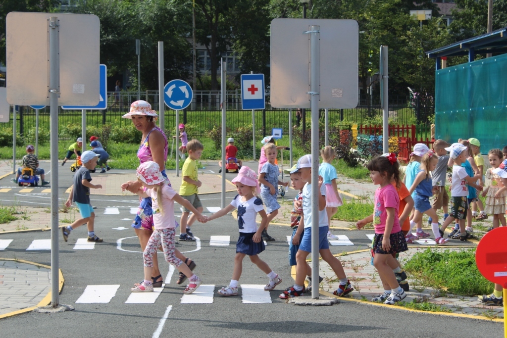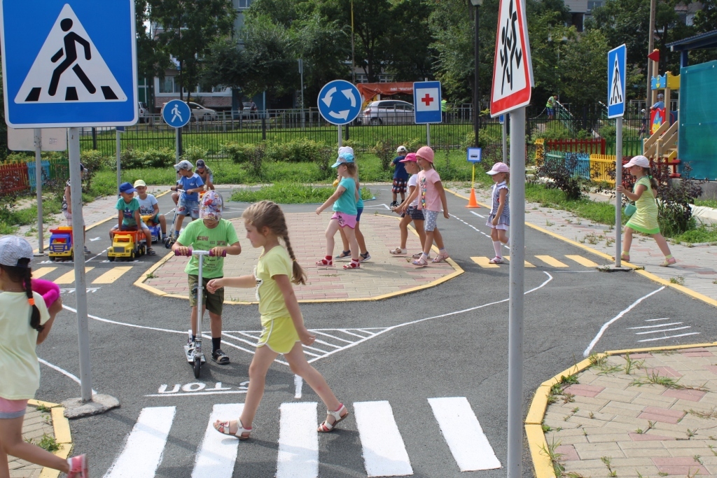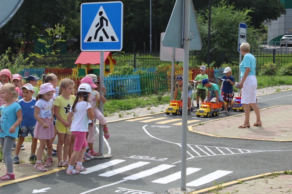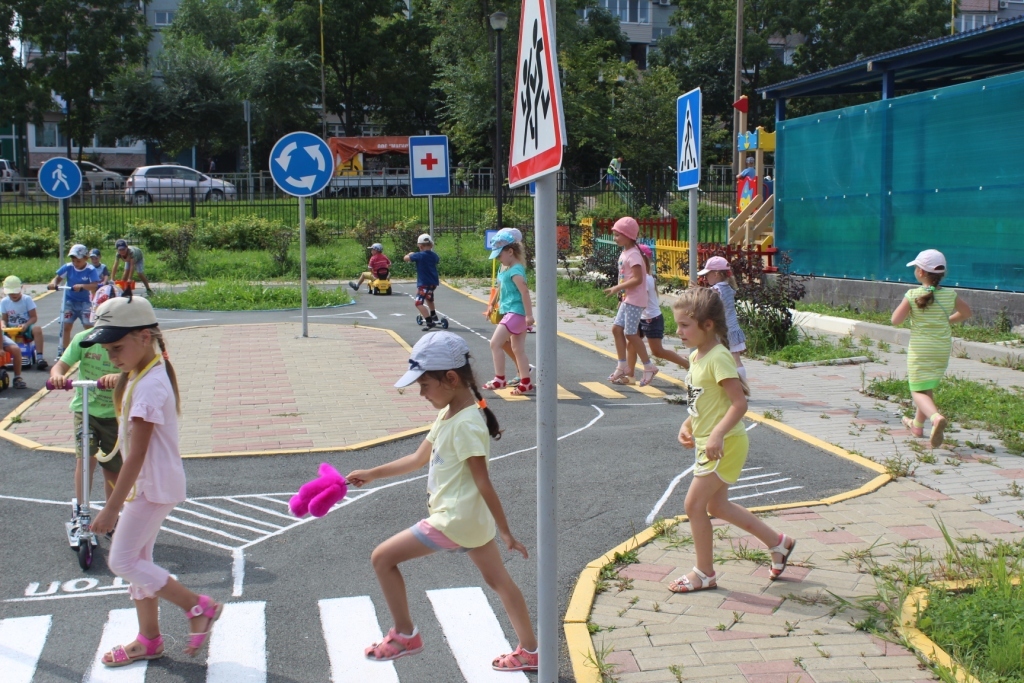 На специальной площадке детского сада «Автогородок» с детьми провели игры, соревнования, моделируя при этом различные ситуации по профилактике и предупреждению детского травматизма, правил поведения на улице, на проезжей части.