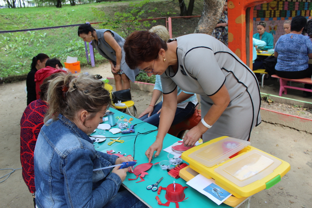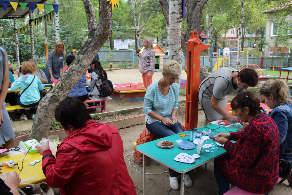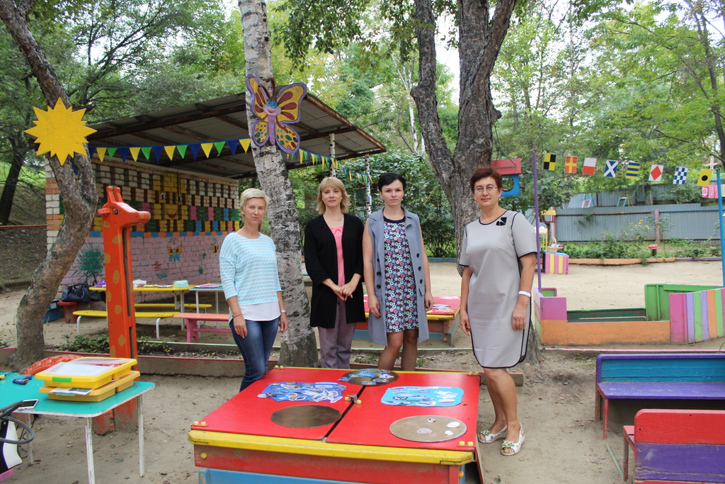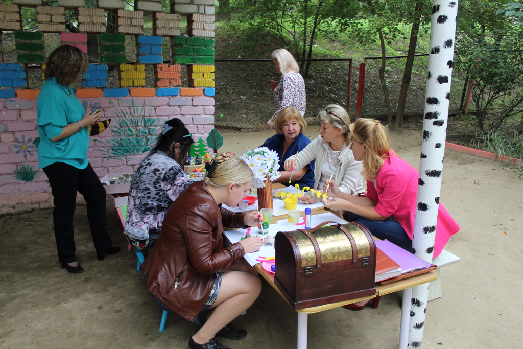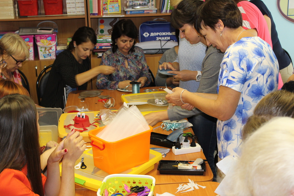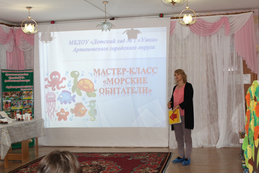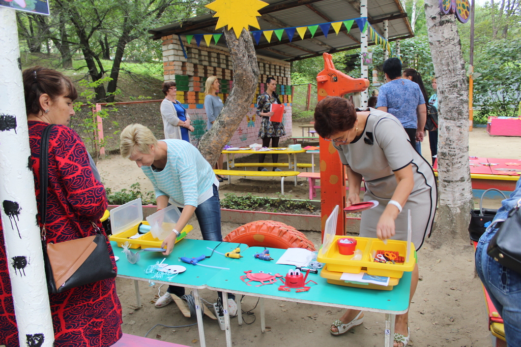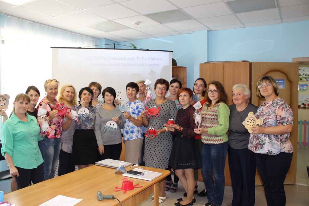 14 сентября 2018 года в МБДОУ «Детский сад № 10» Артемовского городского округа состоялось методическое объединение для педагогов ДОУ «Моделирование развивающей предметно-пространственной среды в детском саду в соответствии с ФГОСТ ДО» - мастер-класс под открытым небом. Под руководством заместителя заведующего по воспитательной и методической работе Пироговой Юлии Владимировны воспитатели нашего детского сада: Колодяжная Татьяна Владимировна, Миронова Валентина Николаевна, Кижапкина Ольга Владимировна подготовили и показали мастер-класс по теме «Морские обитатели». Наши педагоги делились опытом работы по изготовлению из бросового материала обитателей Японского моря (кальмар, осьминог, медуза, краб и т.д.). Также участникам методического объединения было предложено участие в дидактической игре «Найди различие». Данная игра с элементами регионального компонента была изготовлена педагогами нашего детского сада и ее суть заключается в том, что надо уметь различать обитателей озера Ханка от обитателей Японского моря. Опыт работы наших педагогов был признан положительным и рекомендован в практической деятельности с дошкольниками.