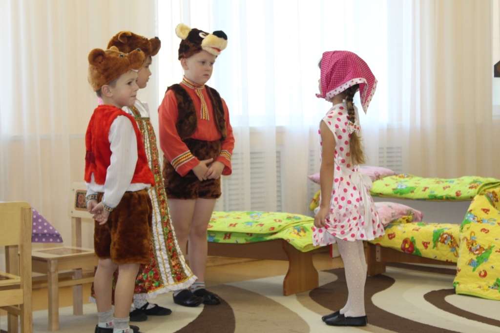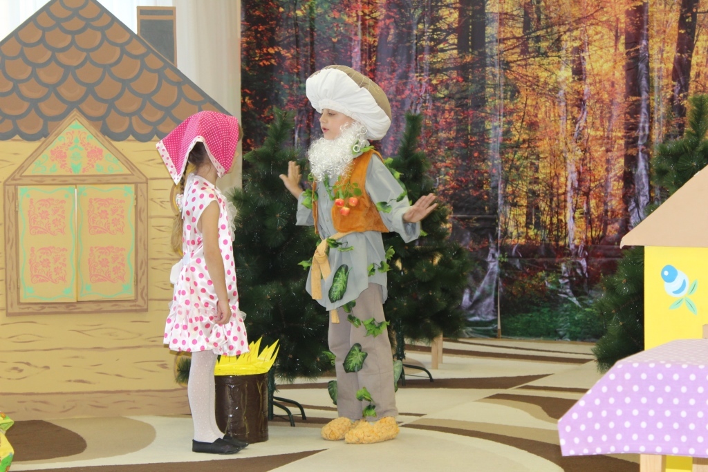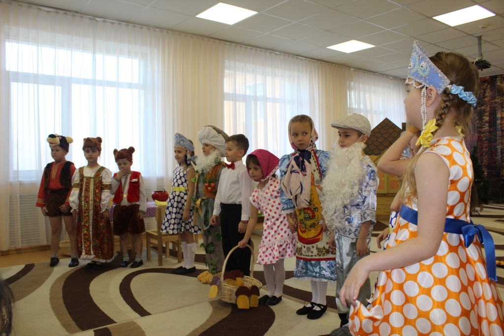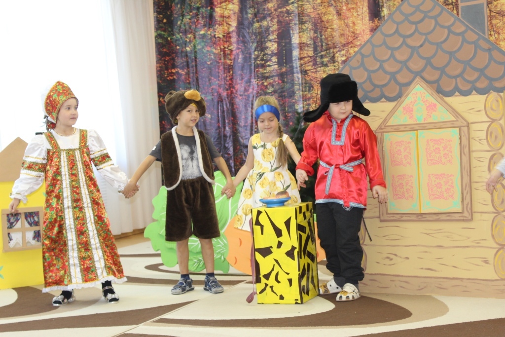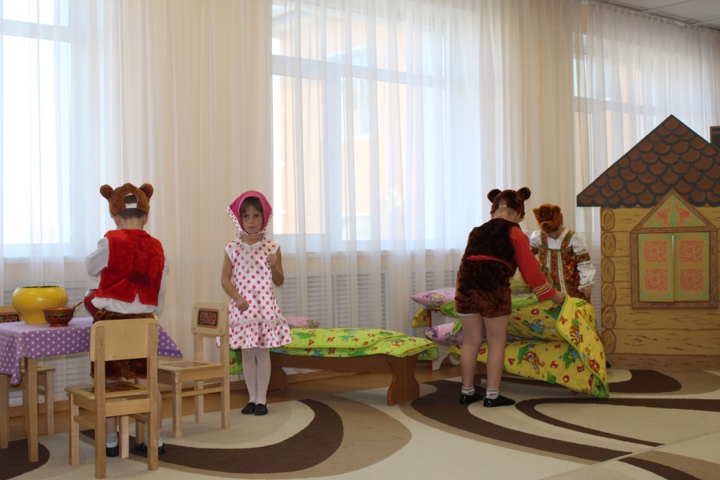 Воспитанники старших и подготовительных к школе групп вместе с воспитателями подготовили и показали спектакли по сказкам, а педагоги младших и средних групп изготовили такие конкурсные работы как: «Пригласительный билет» и «Театральная афиша». Все было по-настоящему: и декорации, и костюмы, и юные актеры. Постановки были по таким сказкам как: «Два жадных медвежонка», «Пых», «Три медведя», «Колобок», «Репка», «Маша и медведь».