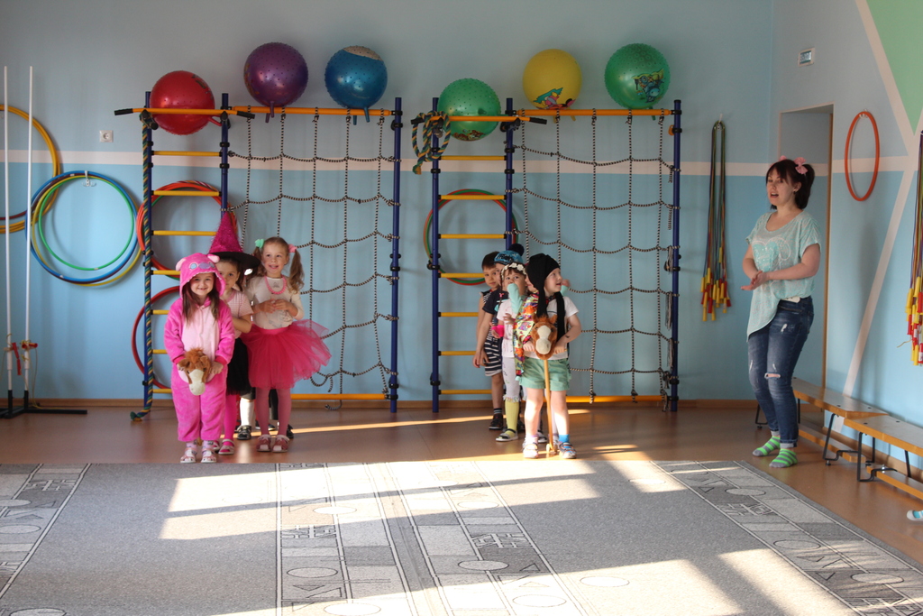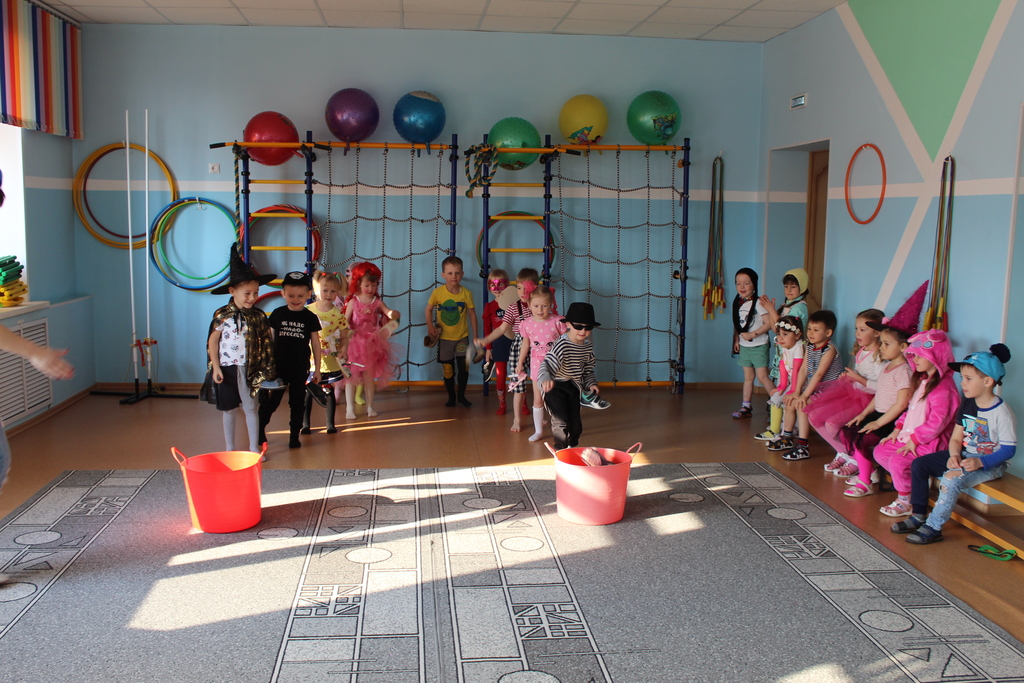 Воспитатели заранее подготовили в спортивном зале театрализованную ширму и сами исполняли роли кукол –скоморох «Прошка» и «Ерошка». Задорные потешники –скоморохи веселили ребят своим шутками, проводили с ними игры-эстафеты «Прокатись на лошадке», «Не попади в болото», «Поймай ложкой мыльный пузырь». Интересно прошла познавательная викторина «Да» и «Нет»: ребятам надо было быстро отвечать на такие вопросы скоморох как, «На луне есть города?», «В радуге есть синий цвет?», «Спать ложишься ты в буфет?» и т.п. Так с улыбками, весело и быстро дети закрепили свои познания об окружающей действительности. С хорошим настроением, с положительными эмоциями и со сладким угощением (конфеты) прощались дети с веселыми скоморохами.