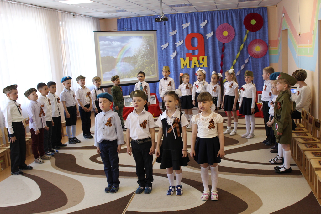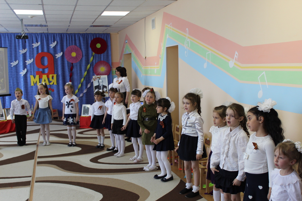 Ежегодно воспитанники нашего детского сада принимают самое активное участие в мероприятиях, посвященных великому празднику - Дню Победы. Педагоги рассказывают ребятам о войне и фронтовых подвигах нашего народа, рассматривают фотографии военных лет, призывают хранить память о том, какой ценой была завоевана эта Победа. В детском саду есть мини-музей «Боевая слава» и в майские дни все занятия по патриотической тематике проводятся именно в этом мини-музее. Самые торжественные мероприятия, посвященные 74-годовщине Победы в Великой Отечественной войне, прошли в музыкальном зале.