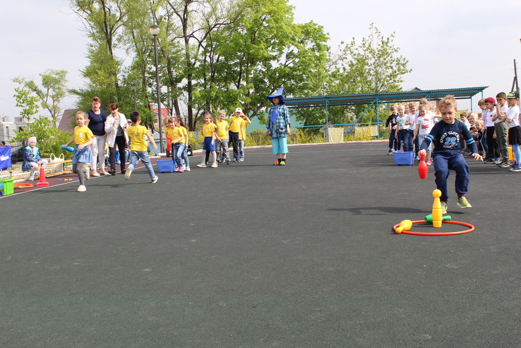 Команды «Почемучки» (группа № 7), «Спорт» (группа № 8), «Айболит» (группа № 9), «Быстрые спортсмены» (группа № 12) демонстрировали свои спортивные достижения в различных играх и эстафетах. Сказочный персонаж «Незнайка» вместе с мальчиками и девочками обеих команд провел веселую зарядку, зарядил детей положительными эмоциями и настроил на соревнования. С удовольствием и желанием дети выполняли все основные виды движений: бег на короткие дистанции, прыжки из обруча в обруч, метание в горизонтальную цель, прыжки через скакалку, ходьба с препятствиями. Ребята знают, что такое эстафеты и умело выполняли движения с речевым и музыкальным сопровождением, демонстрировали командную взаимовыручку.