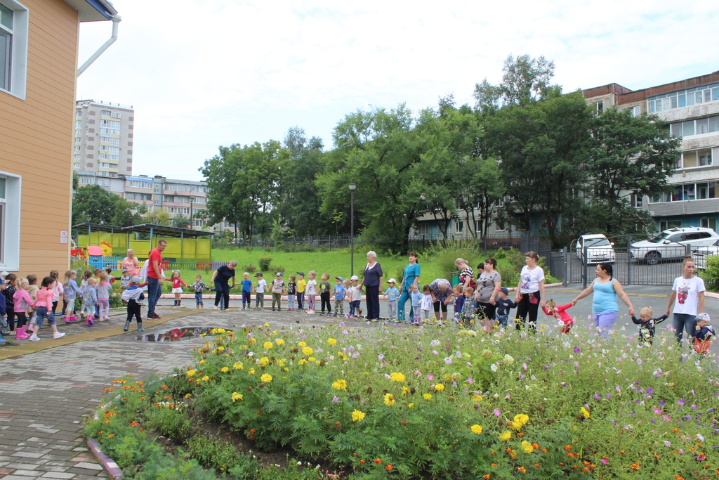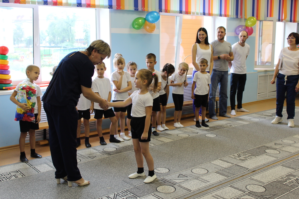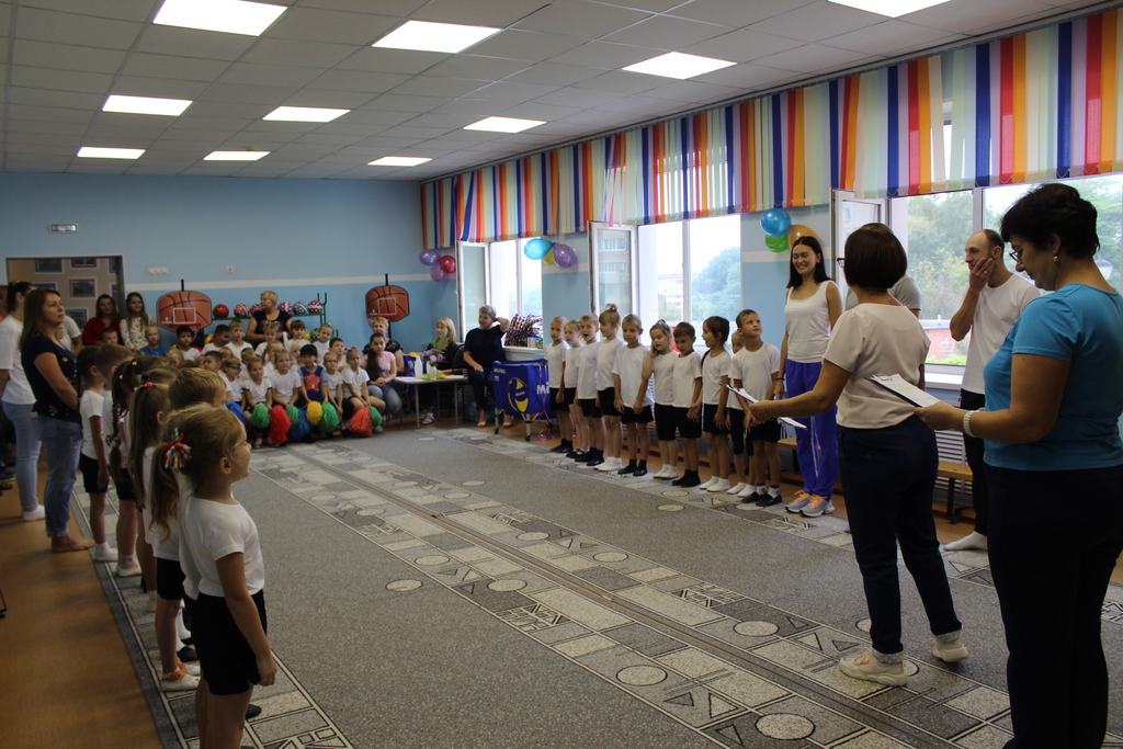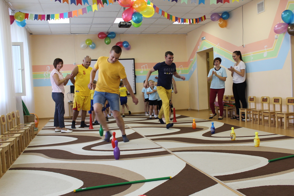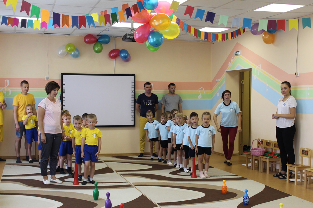 Для наших воспитанников и их родителей 29.08.2019 года в музыкальном и спортивном залах прошли веселые развлечения «Я, ты, он, она – вместе дружная семья». Интересно и весело прошли эстафеты, в которых участвовали воспитанники старших групп их мамы и папы. Дети продемонстрировали свои спортивные достижения. А нам есть чем гордиться: наши воспитанники могут задорно и синхронно выполнять зарядку-разминку, бегать с предметами на скорость, выполнять упражнения с гимнастическими палками; у них сформировано чувство сопереживания, помощи товарищу, дух соперничества. В соревнованиях принимали участие команды «Дружба» и «Спортсмены», болельщики активно поддерживали свои команды, борьба за звание быть лучшими была по настоящему сложной, но победителями стали все участники соревнований – победила дружба. По доброй традиции всем детям приготовили сладкое угощение - шоколадки. А закончилось развлечение большим веселым хороводом вокруг здания детского сада; взявшись за руки, дети, родители и все сотрудники исполнили каравайную песню, в честь дня рождения детского сада.