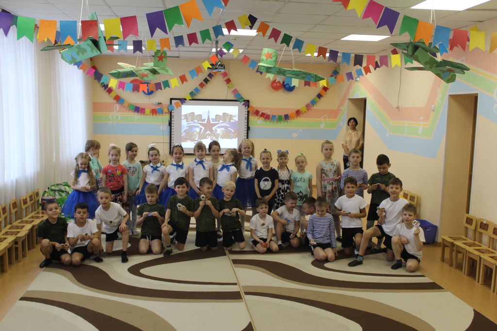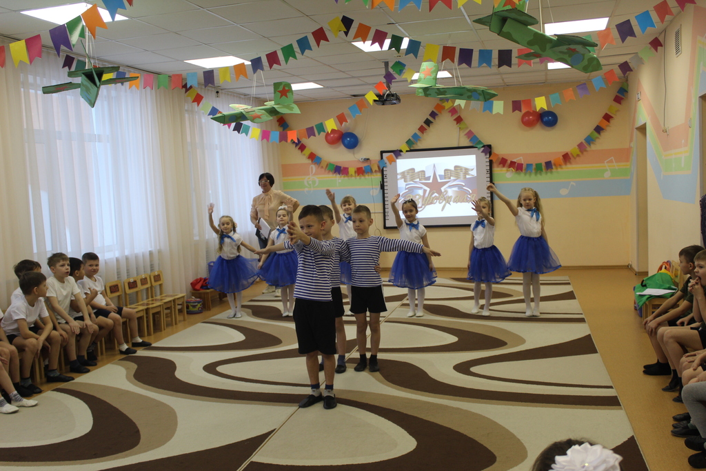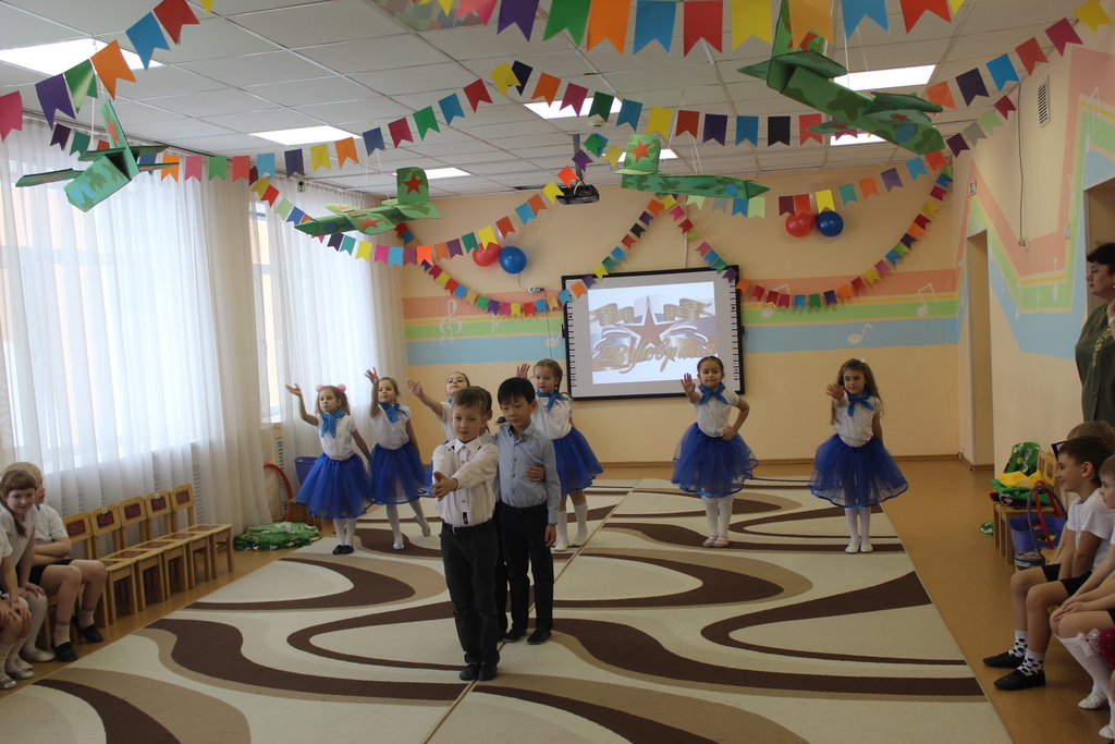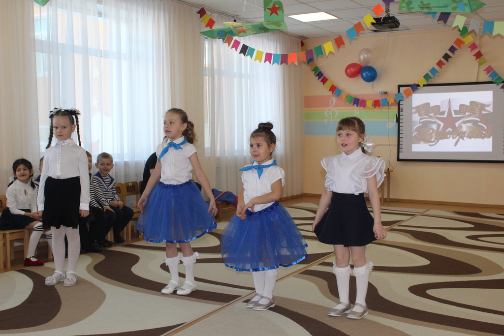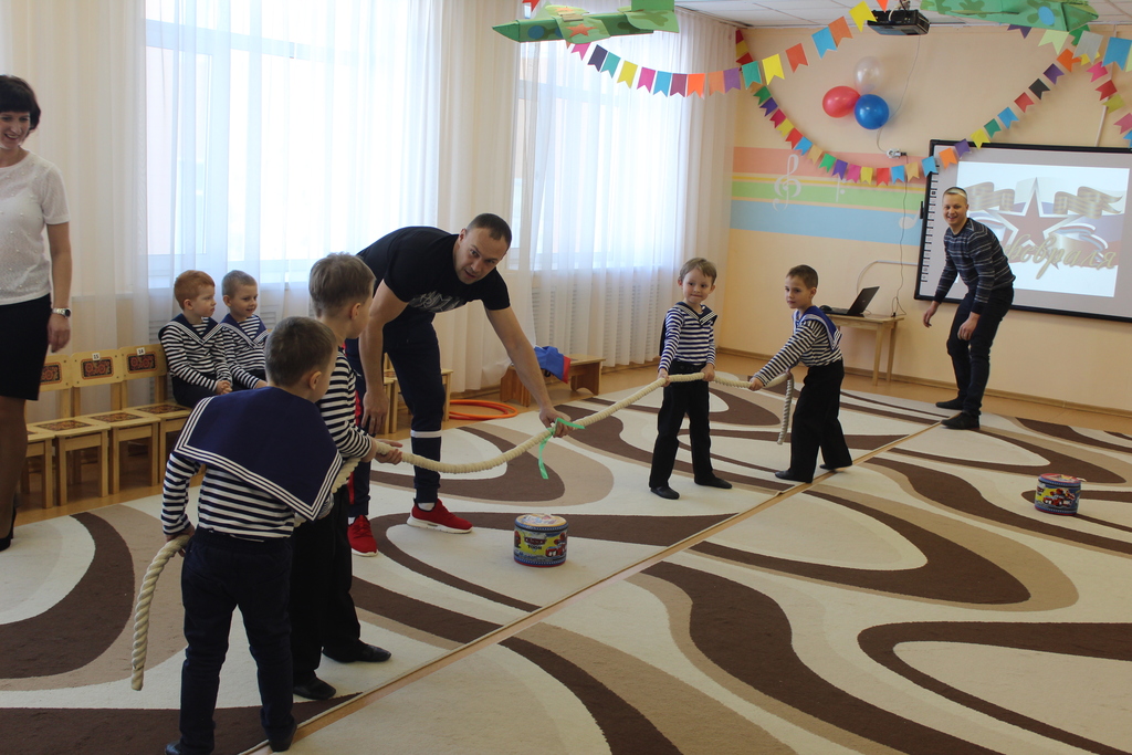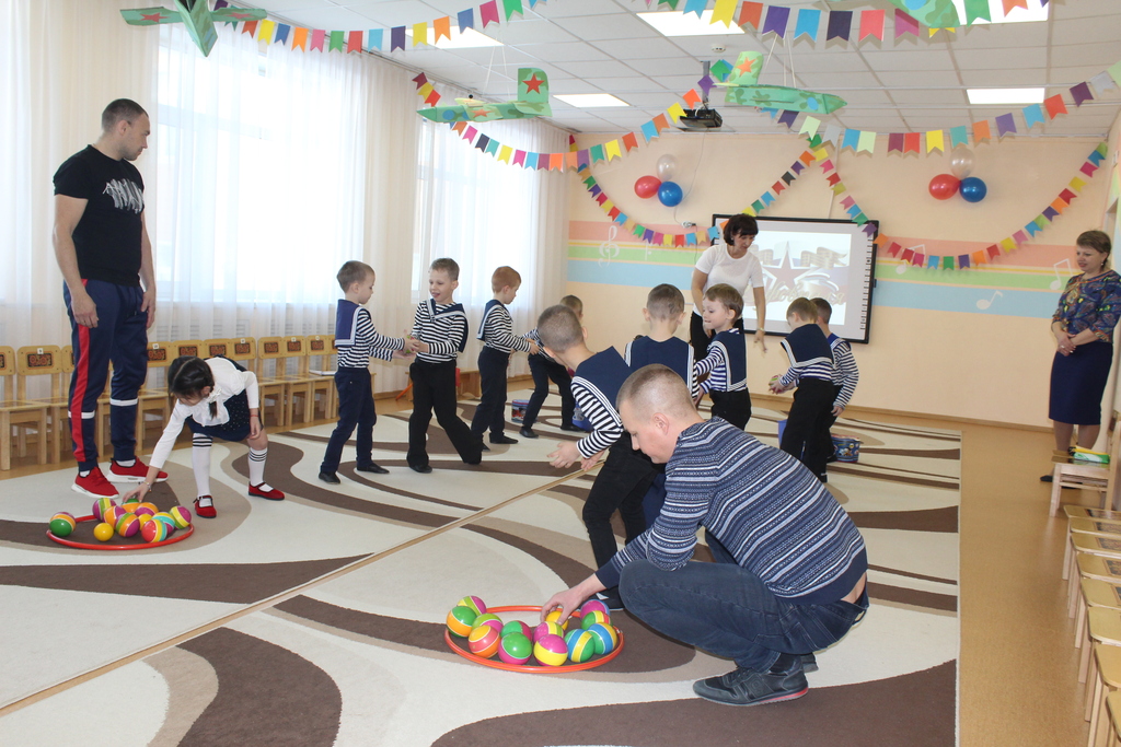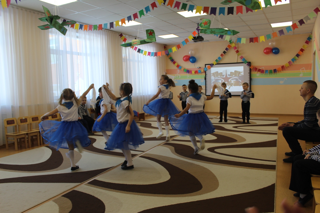 Стало доброй традицией привлекать взрослых к активному участию в детских праздниках. Вот и на этот раз папы вместе с детьми, участвовали в различных спортивных эстафетах, демонстрировали свои умения и навыки в силе и ловкости. А наши воспитанники читали стихи, строились в колонны по трое под бравую песню военных лет, исполнили танец «Яблочко».