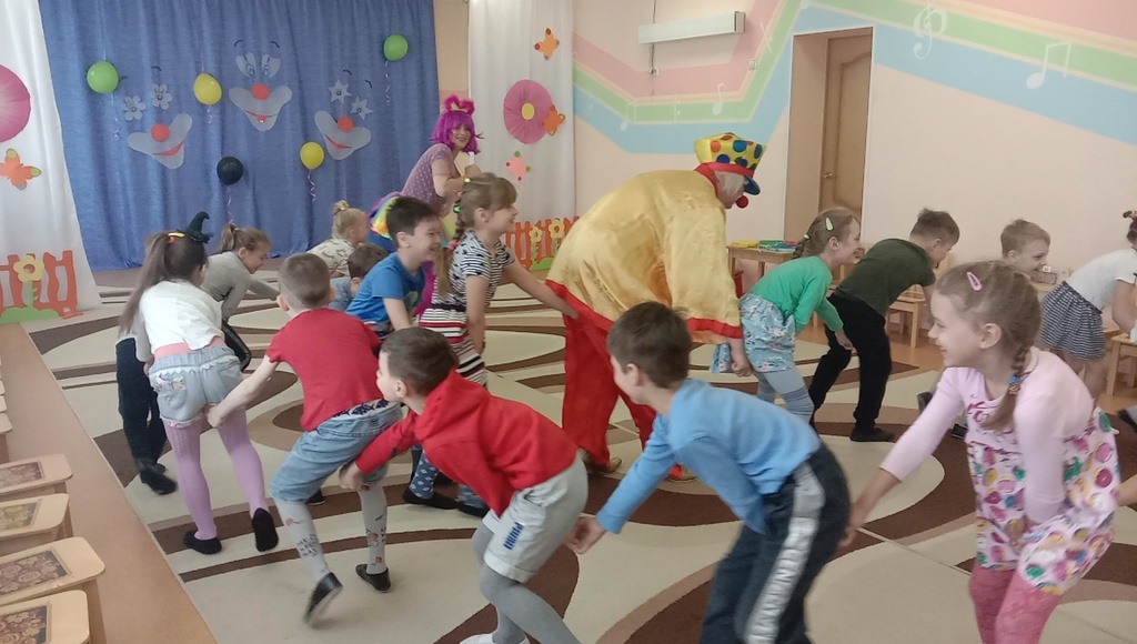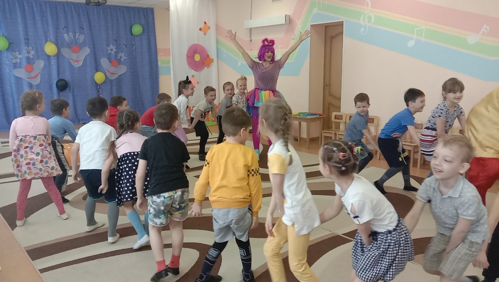 Задорные клоуны веселили ребят своими шутками, проводили с ними игры-эстафеты «Прокатись на лошадке», «Не попади в болото», «Поймай ложкой мыльный пузырь». Интересно прошла познавательная викторина «Да» и «Нет»: ребятам надо было быстро отвечать на такие вопросы клоунов как, «На луне есть города?», «В радуге есть синий цвет?», «Спать ложишься ты в буфет?» и т.п. Так с улыбками, весело и быстро дети закрепили свои познания об окружающей действительности. С хорошим настроением и с положительными эмоциями прощались дети с веселыми клоунами.