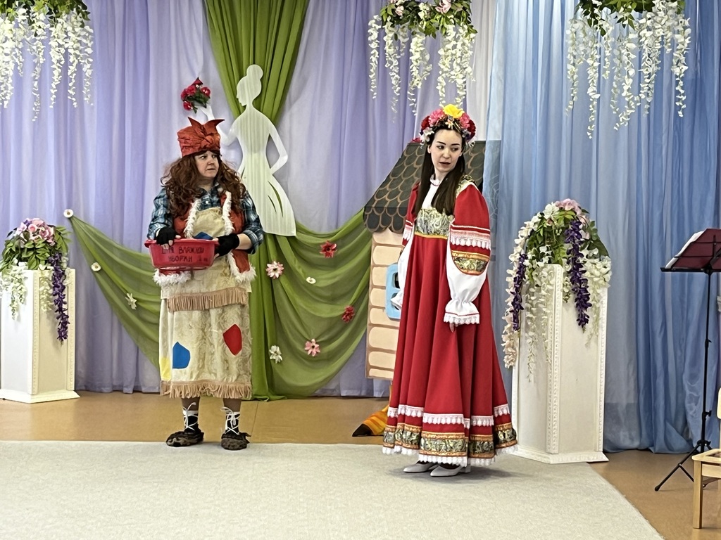 На праздник к воспитанникам младших, средних и старших групп пришли Весна и Баба Яга. Ребята песнями, танцами и веселыми играми уговорили Ягу отдать им волшебные цветы для Весны, девочек и мам. Но и саму Бабу Ягу не обидели: ей достался самый красивый цветок!
