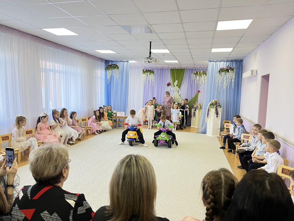 А взрослые ребята из подготовительных к школе групп на празднике «поработали» в «Бюро бодрых услуг». Кто-то попробовал свои силы в качестве маляров, кто-то посоревновался в доставке билетов на скорость. Девочки стали мастерами-стилистами из «Салона красоты». А еще почувствовали себя шеф-поварами модного ресторана. Ну и, конечно, без песен и танцев тоже не обошлось.