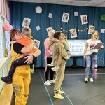Вместе с ними они танцевали, играли в снежки, без рук переносили воздушные шарики, соревновались в меткости, читали стихи и дарили им подарки.