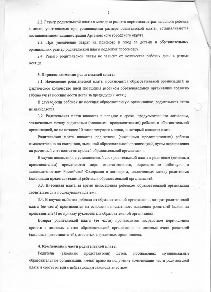 о порядке взимания, использования и регулирования родительской платы за присмотр и уход за детьми в муниципальных образовательных организациях Артемовского городского округа