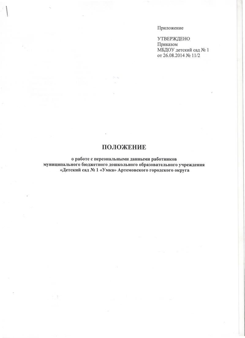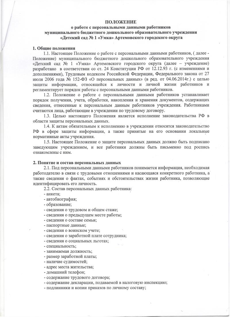 Главная Информационная безопасность Локальные нормативные акты в сфере информационной безопасности Положение о работе с персональными данными работников МБДОУ "Детский сад № 1 "Умка" Артемовского городского округа