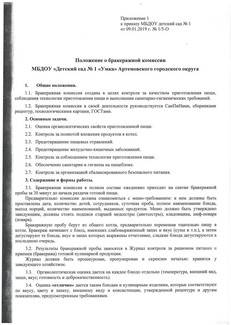 Главная Сведения об образовательной организации Условия питания обучающихся, в том числе инвалидов и лиц с ограниченными возможностями здоровья Организация питания в образовательной организации Положение о бракеражной комиссии МБДОУ "Детский сад №1 "Умка" Артемовского городского округа